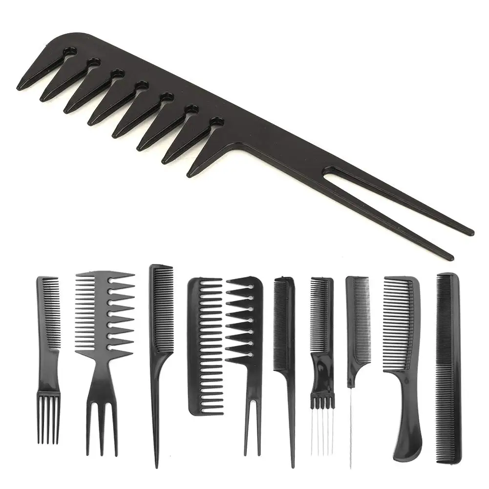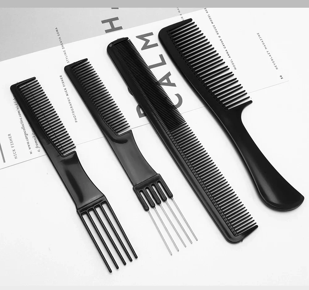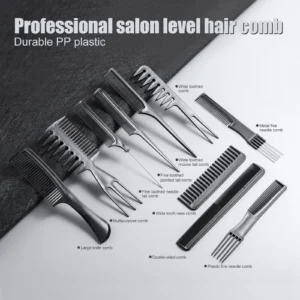 1. This elegant set of black hair combs and brushes is designed for both functionality and style, making it an essential addition to your grooming routine. Crafted from high-quality materials, the combs feature fine teeth for detangling and smoothing, while the brushes are designed to distribute natural oils, promoting healthy hair. The sleek black finish adds a touch of sophistication, ensuring that these tools not only perform well but also look great on your vanity. Ideal for all hair types, this set is perfect for everyday use or special occasions.